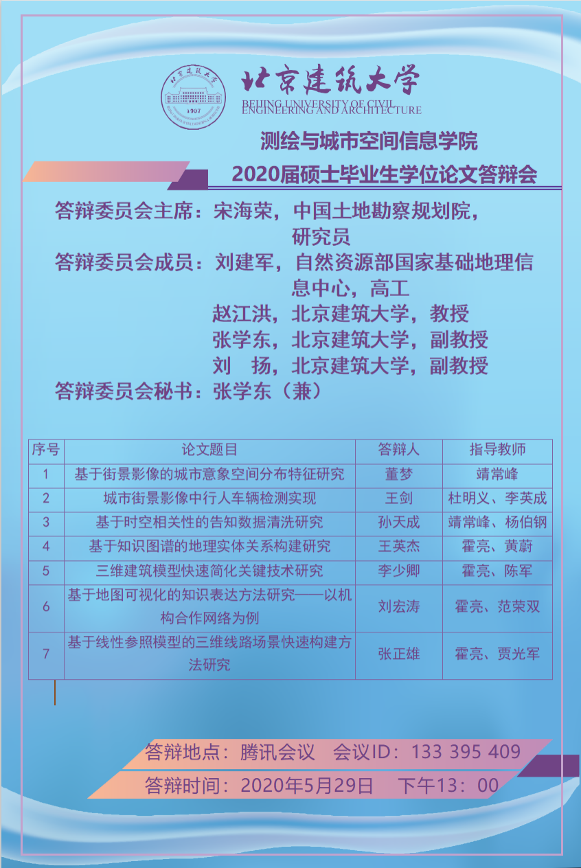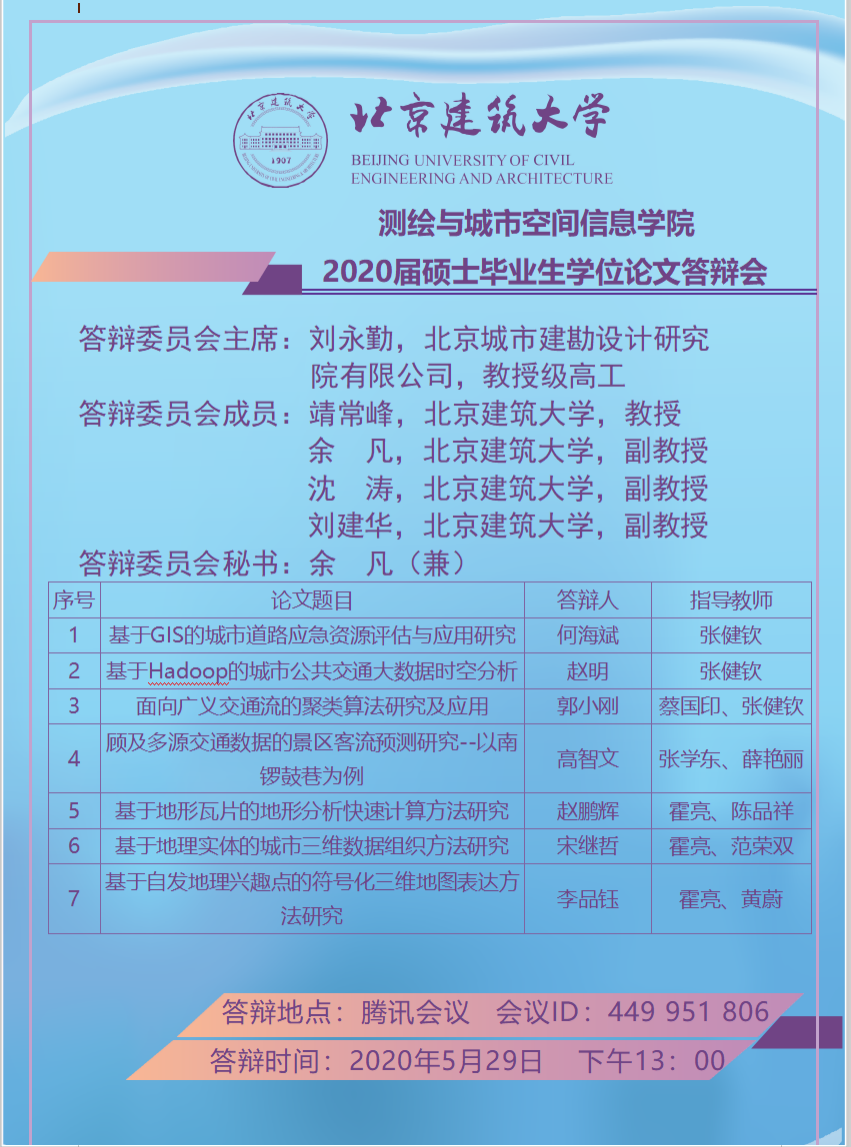 测绘与城市空间信息百合漫画 城市信息化研究所2020届硕士研究生答辩