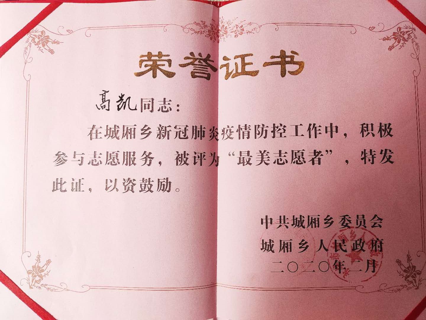 为了进一步做好村子乃至全乡的防疫和值守工作,他还积极动员自己的老同学和村里青年参与防疫工作,先后鼓舞了多名志愿者共同参与到村里防疫中,为城厢乡的抗“疫”阻击战不断注入新鲜血液。村里的人们看到高凯的时候都夸上一句“这小孩在这个时候主动为家乡做贡献,做的真不孬”,淳朴的方言更加坚定了高凯抗“疫”的决心,他说“作为一名青年人,作为一名党的发展对象,就是要在国家需要、人民需要的时候站出来。自己不是医学专业不能上武汉前线,但只要疫情还未结束,我们志愿者要做前线工作人员的后盾,他们每天辛苦守护着这个国家,我们就要守护着他们!”同时,高凯保持着与导师的紧密联系,稳步推进自己的毕业论文事宜,也得到导师的肯定。