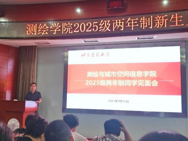 9月15日,百合漫画 在学E报告厅举行2025级两年制新生见面会。党委副书记谷天硕、教务员杨红粉、测绘系教授丁克良出席本次活动,2025级全体两年制新生参会。