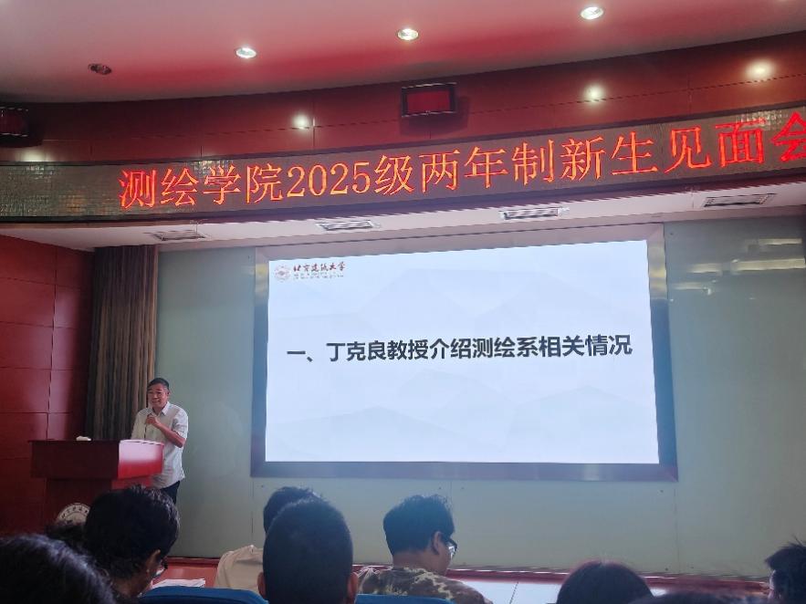 丁克良为新生们高屋建瓴的介绍了测绘专业。他介绍了测绘科学与技术在现代城市建设、国土空间规划等前沿领域日益广泛的应用和重要性。他鼓励同学们要尽快适应本科阶段的学习节奏和深度,夯实专业基础,积极投身实践实验,不断提升自身的创新能力和解决复杂工程问题的能力。