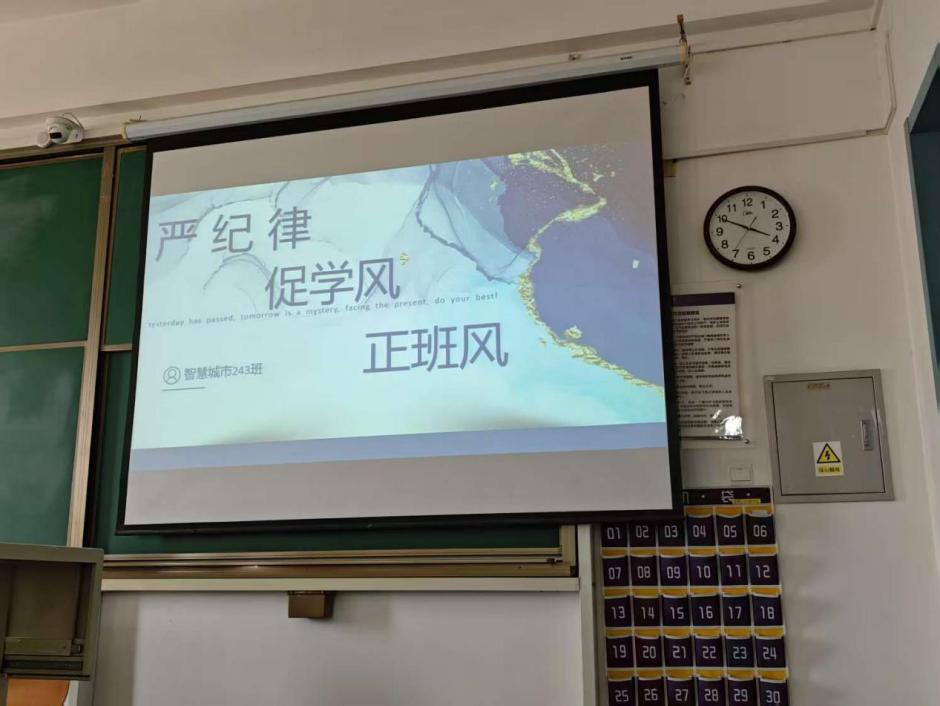 近日,智慧城市243班级积极响应学校号召,以“严纪律、促学风、正班风”为主题,开展了一系列班级建设活动,旨在打造纪律严明、风气端正、学习氛围浓厚的优秀班集体。