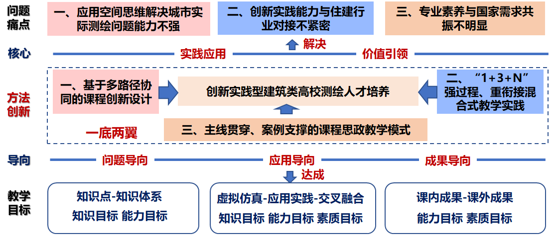 参赛课程《城市空间信息学》经过教学名师奠基、历经两代教师十四年持续建设,为创新实践型建筑类高校测绘人才培养提供坚实的理论基础和实践范例。针对学生应用空间思维解决城市实际测绘问题能力不强、专业素养与国家需求共振不明显等教学中的痛点和难点问题,团队创新性地提出基于多路径协同的课程创新设计模型、“1+3+N”强过程、重衔接的混合式教学实践方法以及主线贯穿、案例支撑的课程思政教学模式,显著提升了学生利用空间思维解决实际问题的能力。课程基于案例教学,首创“四多”教学新模式、促进课程学习从传统的教与学走向教学相长。课程曾获国家级线下一流课程、教材连续入选十三五、十四五规划国家测绘百合漫画 核心专业规划教材。