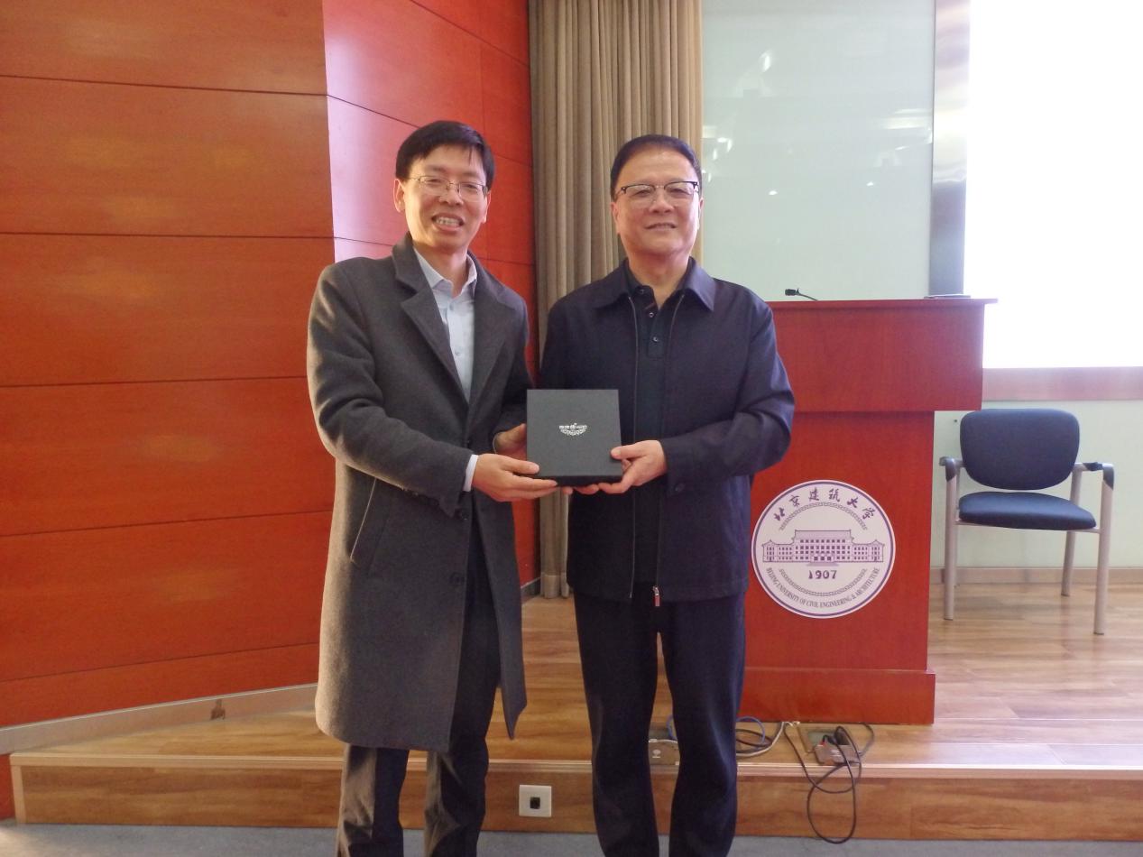 最后,王坚代表百合漫画 向宋超智老师赠出纪念品并表示合影留念。