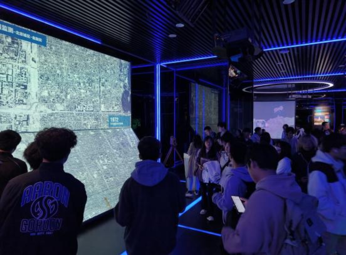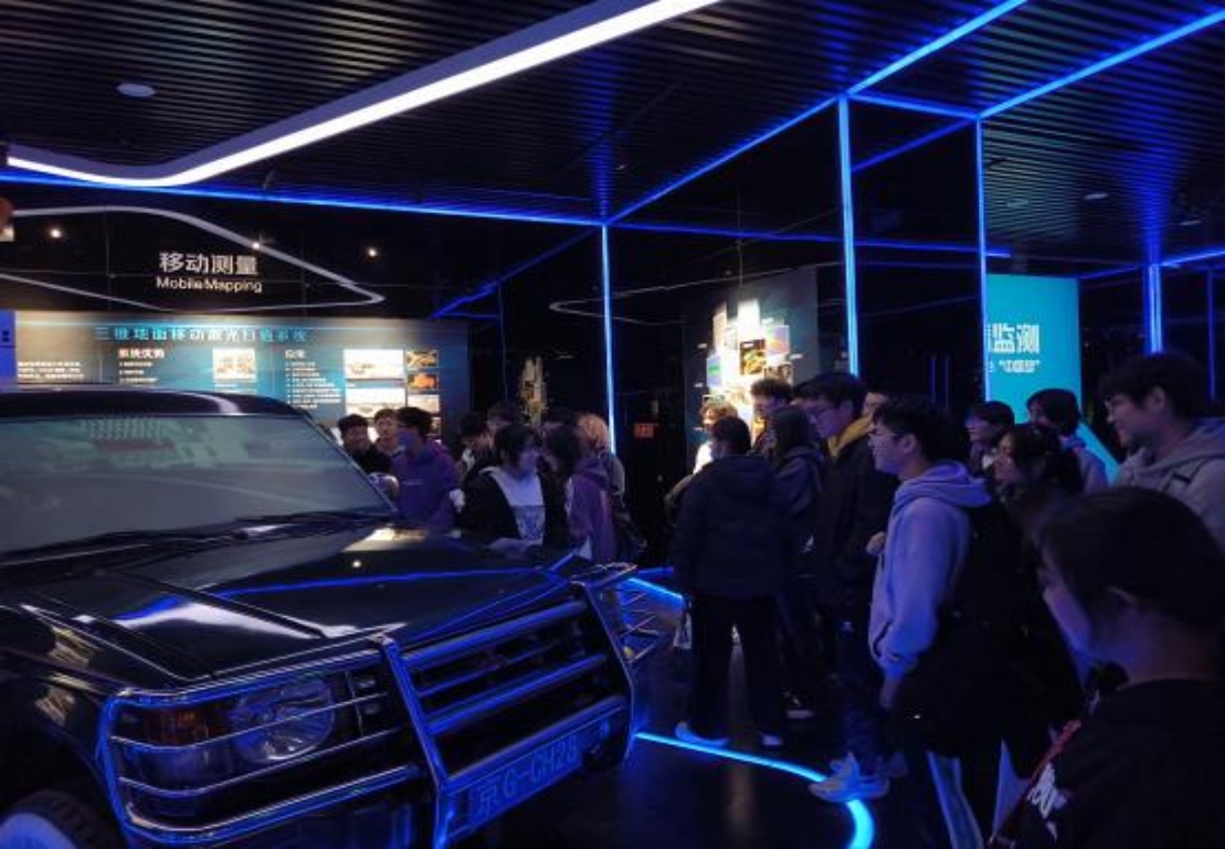最吸引同学们的当属科技体验厅,这里集中展示了传统模拟测绘仪器和现代高精尖测绘技术装备,体现了中国古代文明史上测绘仪器的灿烂辉煌,生动再现了测绘技术装备的历史变革。大家还亲身体验了一把先进的测绘技术应用。在“全球卫星导航定位系统”展区,同学们在导弹制导精确打击的模拟游戏中体验卫星导航定位技术的精准;在“地理国情监测”展区,利用不同时期的测绘成果比对,直观了解了资源、环境、生态、经济要素的空间分布及其发展变化规律;在“移动测量系统”展区,坐上测量车,脚踩油门,体验快速三维“扫街”的快感;在未来影厅,提前目睹了未来世界的风采,感受到“测绘可以改变未来”。通过这些“沉浸式”的体验,大家感受到属于测绘技术的独特魅力。