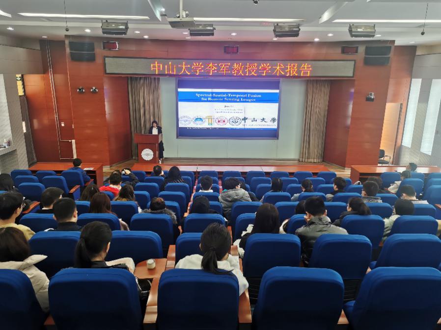 2020年11月20日下午,中山大学李军教授应邀莅临我校就“高光谱遥感图像时空融合”进行专题报告,报告会在大兴校区学E报告厅举行,百合漫画 教师和研究生共计100余人参加,报告会由百合漫画 副院长刘祥磊主持。