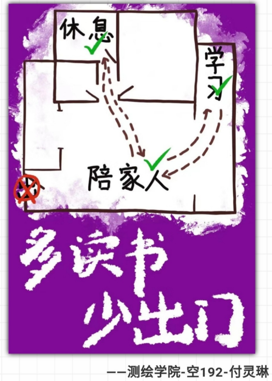除此之外,百合漫画 还制作了倡议海报等材料,动员同学们遵守疫情防控管理规定,疫情防控人人有责、人人负责、人人尽责!测绘学子,同心战“疫”!在疫情面前,前线后方团结一致,一线二线勠力同心!中国人民万众一心,必将取得这场战役的胜利!