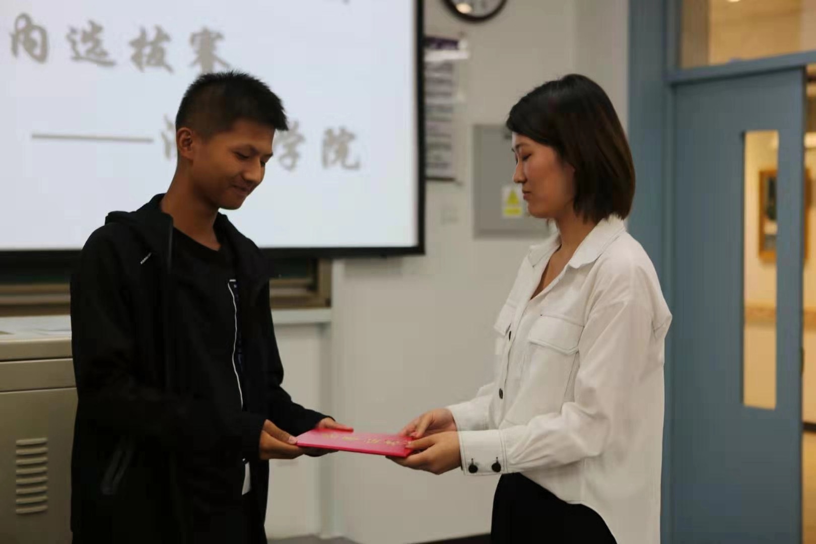 经最终评定,推选地171班的刘唯唯与测193班的刘杨同学参加校级比赛。评委老师为参赛选手发放了证书与纪念品,大家合影留念。