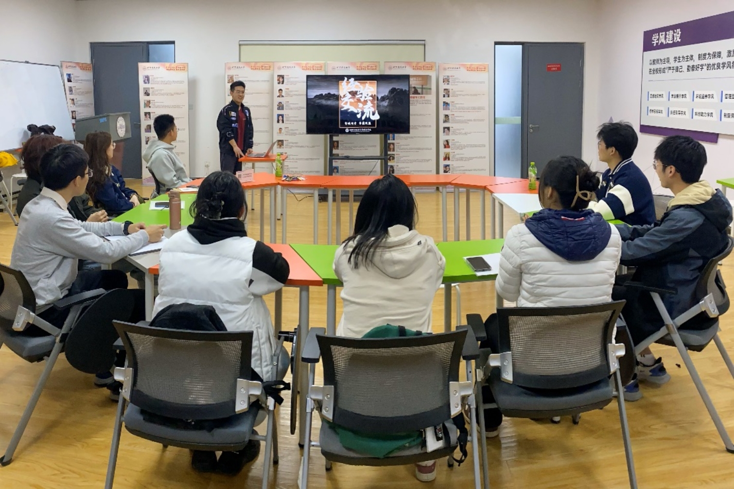 本次交流会采取问答形式进行,学习部与学霸联盟就部门的社团性质、创立目的、开展方式以及具体分工等方面进行了深入交流。同时,两部门成员就值班制度下的课堂形式和晚自习的开展情况进行了深入讨论。