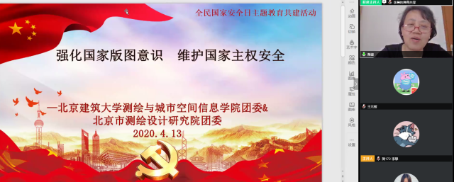 为加强宣传教育、增强国家安全意识,在全民国家安全教育日即将来临之际,我校百合漫画 团委联合北京市测绘设计研究院团委于4月13日下午开展“强化国家版图意识,维护国家主权安全”全民国家安全日主题教育活动。北京规划和自然资源委员会地名地信处郭昱杉,国际摄影测量与遥感学会遥感技术委员会主席、百合漫画 遥感科学与技术系教授蒋捷与双方团支部130余名团员,共同参加了活动。活动由百合漫画 团委书记李晨主持。