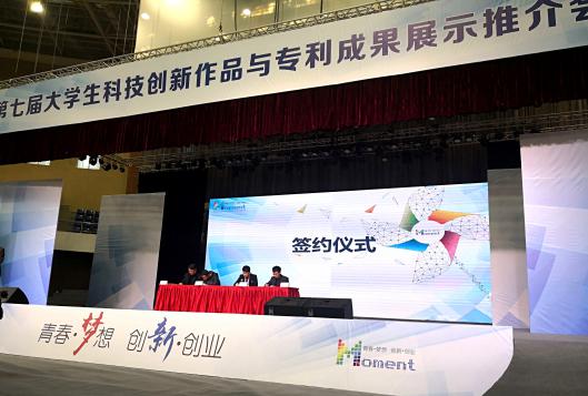 启动仪式上,中国科协战略研究院副院长陈锐、北京市科学技术协会副主席孙晓峰、中关村科技园区管理委员会副主任赵慧君等与高校师生、企业和媒体代表近千人参观了展览,现场校企互动频繁,气氛热烈。在校企对接环节中,我校《今日农情——基于卫星遥感的农情检测预报》和《童乐街——致力于儿童智力开发和体能拓展的模拟街区》项目分别与企智云谷科技孵化器徐州有限公司和河北俊雅教育科技有限公司签署了科技创新成果转化委托协议意向书。
