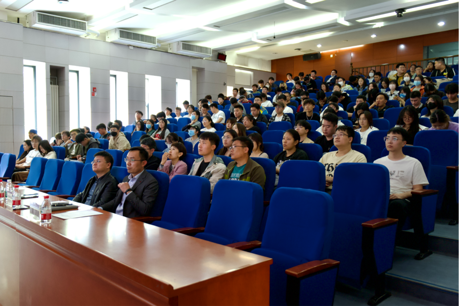 接下来,保研学生张超群和优秀学生骨干代表陈兆蕊同学分别上台做主题发言,张超群同学从扎实学业、科研经历、保研分享、课余生活四个方面,为学弟学妹们分享自己学习上的先进经验。陈兆蕊同学从党旗引领、学业成绩、服务同学、社会实践几方面,着重为大家分享了学生骨干工作经历。