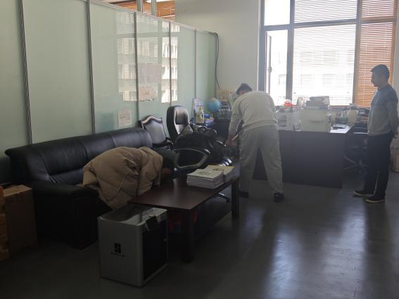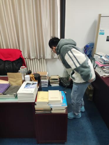 下午1:30,党员们带着水桶、抹布、扫帚等工具,分组前往各楼层导师办公室。活动中,有人细致擦拭积灰的窗台与书架,有人俯身清理桌椅下的隐蔽角落,还有人将散落的实验器材分类归位。针对常年堆叠的文献资料,党员们耐心整理排序;面对布满水渍的玻璃隔断,反复清洗直至透亮。活动期间,许多导师恰逢路过,纷纷驻足点赞。周磊教授感慨:“这些年轻人擦的不只是桌子,更是师生之间心贴心的桥梁。”