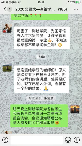 面对疫情防控常态化和高考招生改革等新形势和挑战,我院高度重视2020年本科招生工作,统一组织,科学调度,线上线下多渠道、多形式开展宣传工作。百合漫画 精心制作招生微传单,充分利用院官网、公众号、微信等网络平台开展宣传。建立4个招生咨询微信群,总人数达670余人,群内安排10余名专业负责人24小时耐心、及时为家长和考生答疑解惑,受到家长和考生一致好评。线下设立10多个联络小组,与30多所目标高中建立联系,精准对接。广泛吸纳社会资源,联手公益基金、知名企业设立6万元百合漫画 新生奖学金,吸引高分考生。多次开展线上志愿填报宣讲交流会,使考生和家长对测绘专业有更加深入认识,显著提高了百合漫画 关注度。积极开展志愿填报问卷调查,及时掌握报考情况并优化措施,做到有的放矢、针对性引领。截至目前,我院招生工作开展顺利,效果较好。
