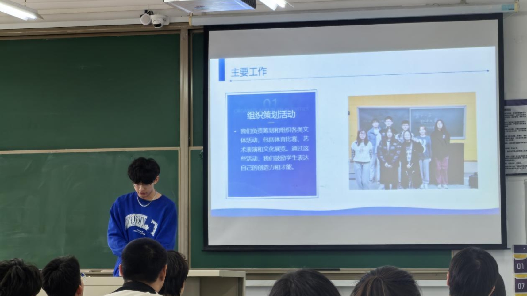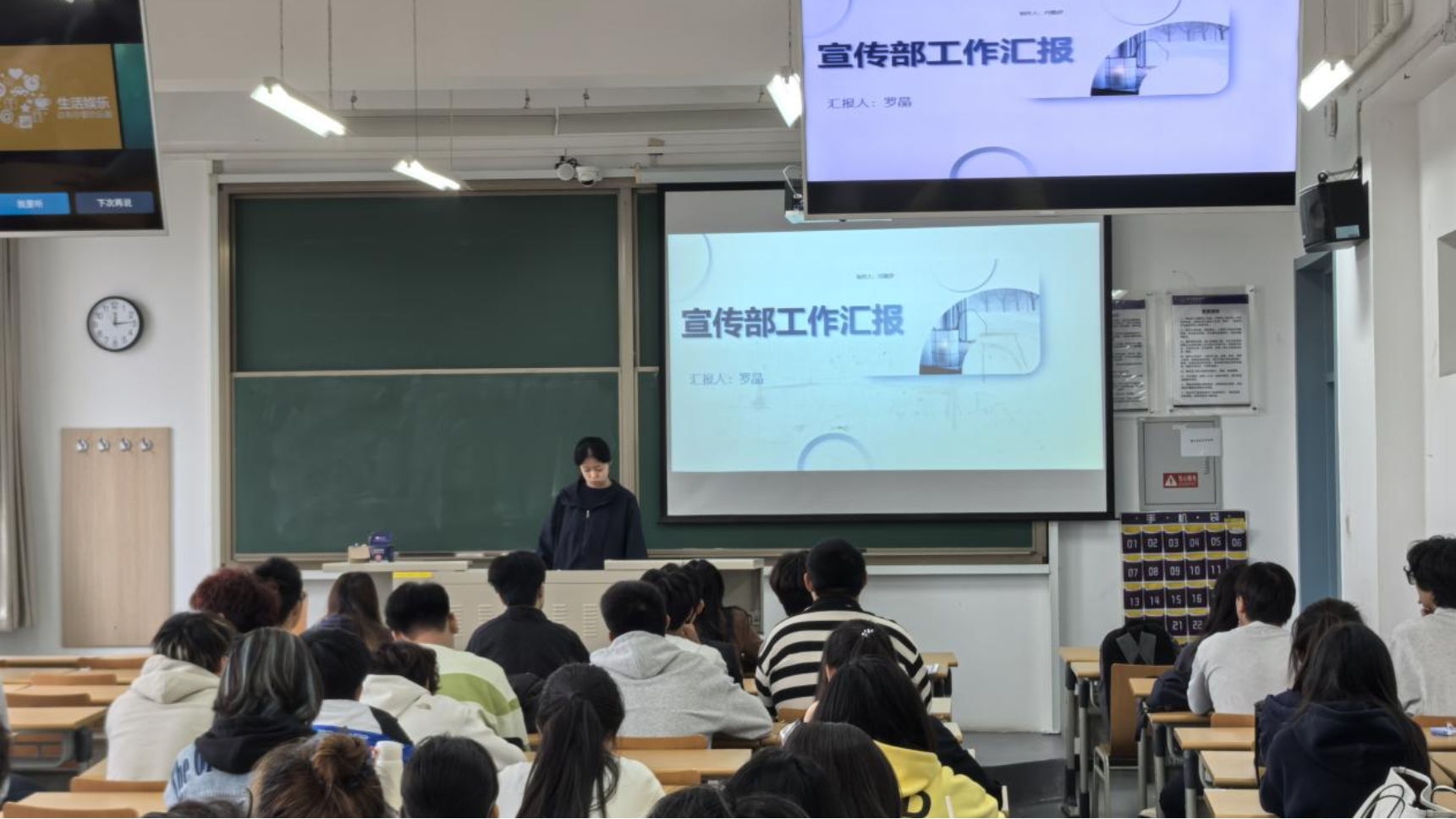 会议伊始,团委副书记姜陆衡组织各部门进行年度报告总结,全面回顾了过去一年的工作成果与挑战。紧接着,主席团成员杨宇晨及各部门负责人依次上台,对上学期的工作进行了详细的汇报总结。他们不仅反思了工作中的不足之处,还提出了具体的改进办法,并对未来工作进行了展望,展现了学生会成员积极进取、勇于担当的精神风貌。