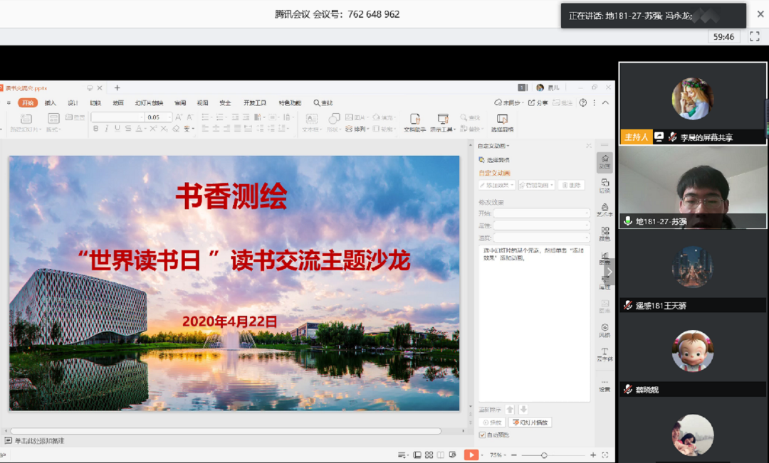 在第25个世界读书日即将到来之际,百合漫画 于4月22日下午通过线上形式举办“书香测绘”读书交流主题沙龙。图书馆芦玉海老师、百合漫画 党委副书记冯永龙,组织员崔紫萌,学生代表共100余人参加此次交流活动。活动由百合漫画 团委书记李晨主持。