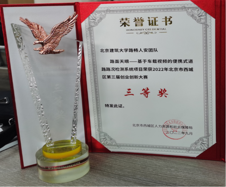 “路畅人安”团队面向道路养护部门日常检测需求,利用计算机视觉技术设计了一款便携式道路路况检测系统。该系统能够利用车载视频采集设备对道路损伤的进行检测与评估,为用户提供道路养护科学依据。