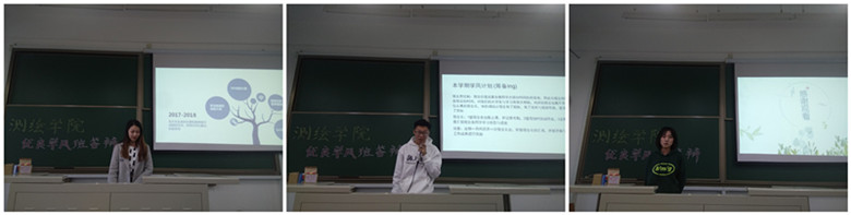 经过申报、审核等环节,共有5个本科班级进入现场答辩环节。他们一一分析和总结班级在上学年取得的主要学习成效、存在的主要问题、本学年的学业目标、将采取的主要举措,并对班级在学风建设、班级建设中凝练出的特色、亮点进行交流和展示。评委一一提问并进行点评。