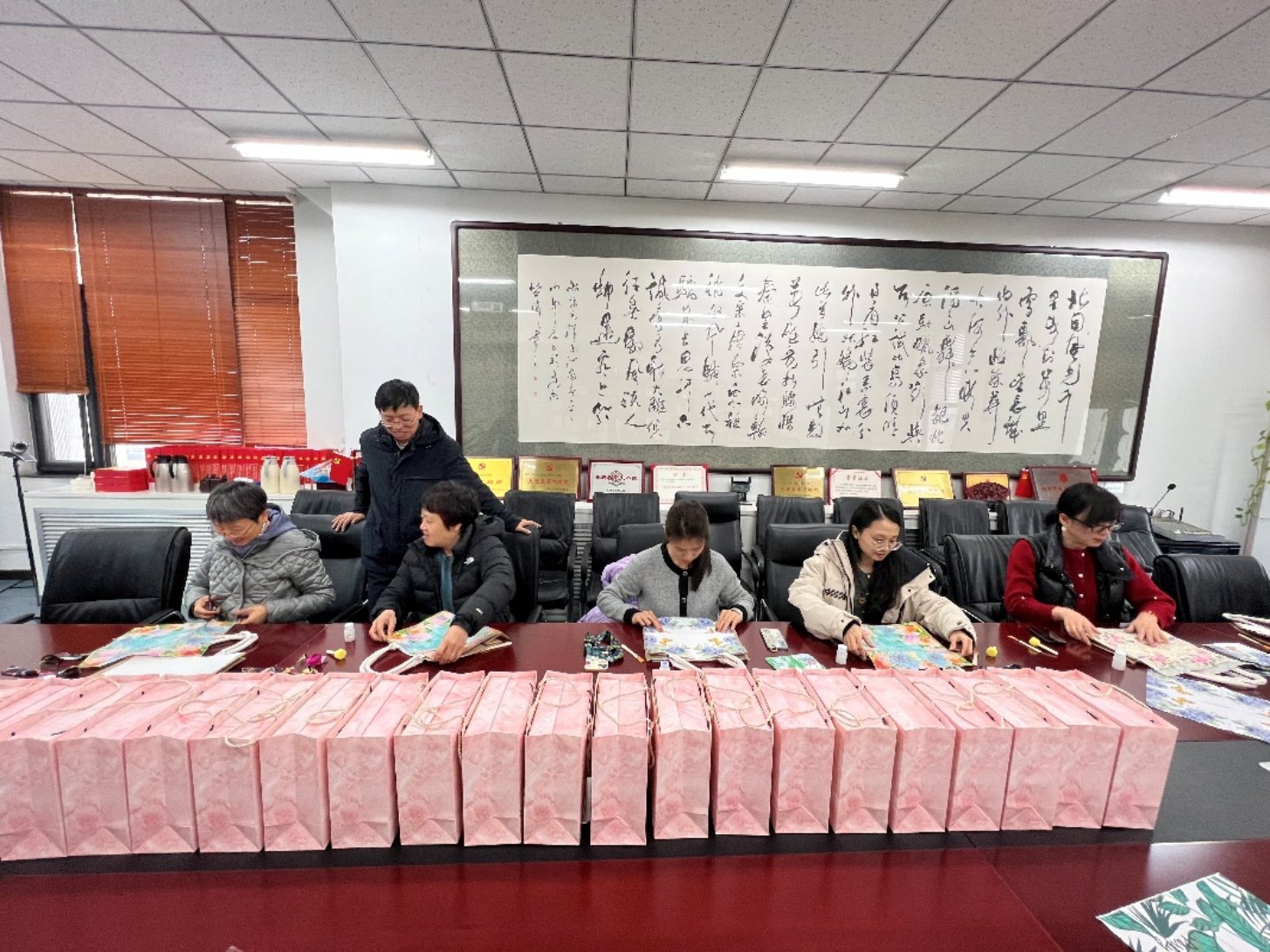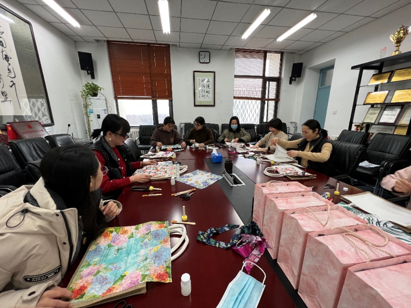 3月5日,三八国际劳动妇女节来临之际,百合漫画 分工会举办“‘测’女神‘绘’春色”手工DIY活动。百合漫画 全体女教工参加了活动, 百合漫画 办公室为老师们采购蝶骨巴特包制作材料,老师们根据自己的喜好拼搭春色,大家充分发挥自己的想象力,选图、剪切、拼接,粘贴,一个步骤一个步骤有条不紊地进行,最后系上精美的丝巾,原来一片空白的蝶骨巴特包在老师们精心的制作下,瞬间呈现出春色满园的气息。
