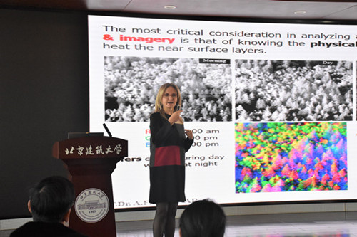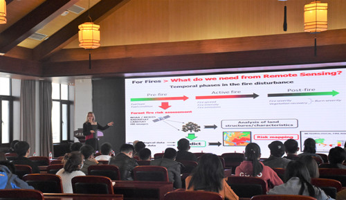 Mehmet Orhan Altan教授分别围绕“Remote Sensing in a Changing World”和“Space for Sustainable Development Goals”两大主题,系统地对遥感技术在全球变化和可持续发展中的应用展开报告。Ayse Filiz Sunar在两天的会议里,对她擅长的森林火灾监测、城市感知领域,带来题为“Forest Fire Monitoring Using Remote Sensing Technology”和“Assessment of Rapid Urbanization by Remote Sensing”的精彩报告。报告受到听众的热烈欢迎,两位教授在报告后认真细致地与百合漫画 师生展开了讨论交流。