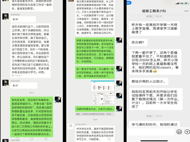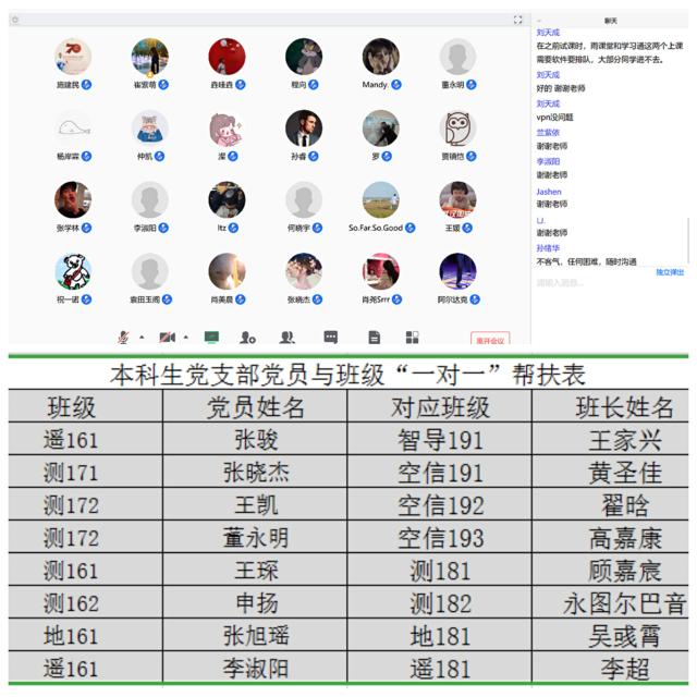 教工党支部与学生党支部开展“一对一”帮扶活动。本科生党支部与网络信息管理服务中心党支部进行对接,网信中心党支部孙绪华阐述了信息化技术在防控疫情中起到的重要作用,并在线为同学们解答了关于网络、信息系统、数据分析、网络上课平台等问题,为在线课程学习做准备。测绘工程系教工党支部与城市测绘研究所党支部对接,教师党员对学生反映的线上学习课程平台诸多问题进行了一一解答。“一对一”帮扶活动既鼓舞了教师党员砥砺前行,又激励了学生党员勇担使命。双方党支部将持续开展结对帮扶活动,做出成效,共同度过疫情防控关键时期。