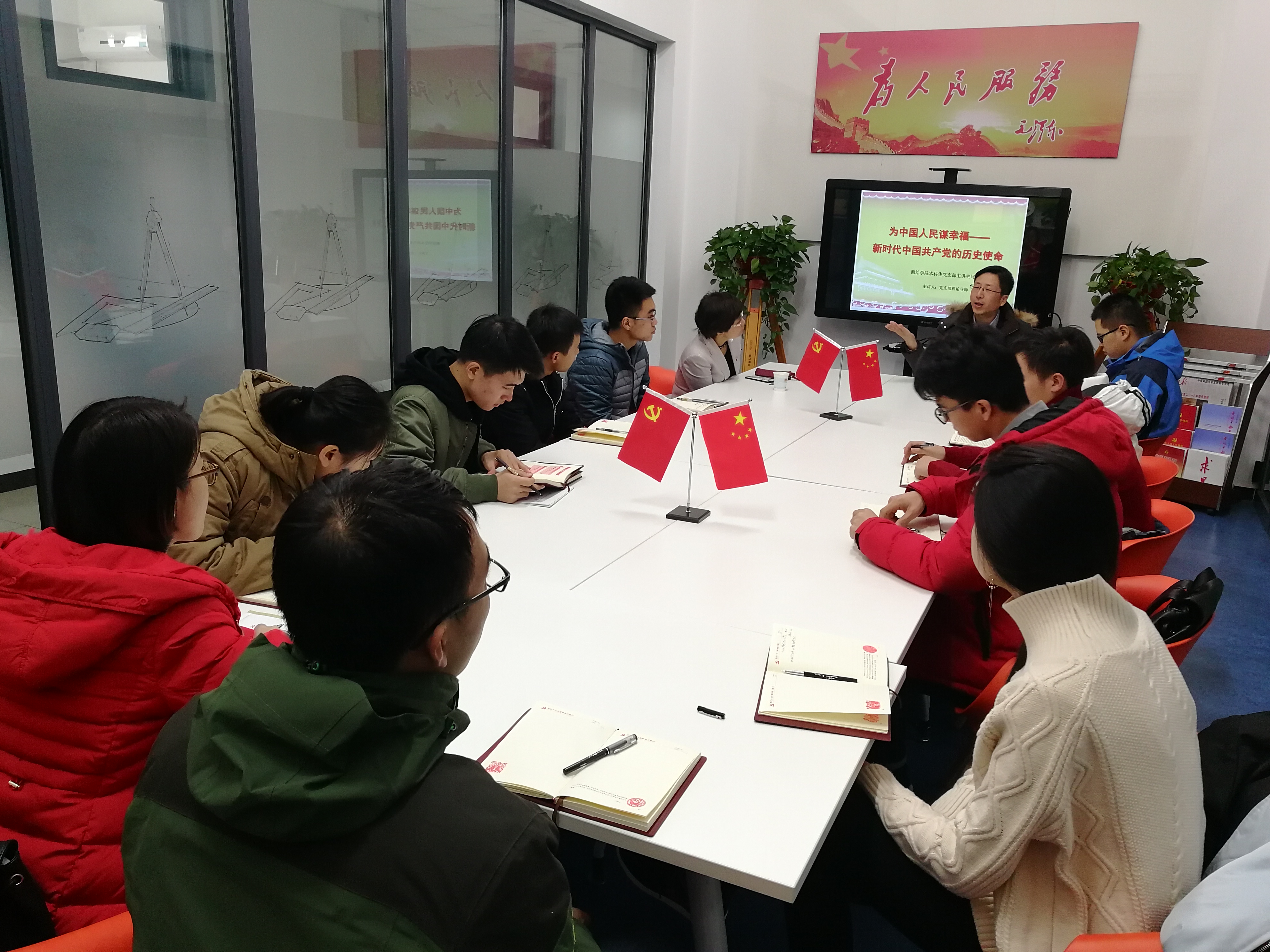 副院长汪琼枝老师作为主讲人以“为中国人民谋幸福-新时代中国共产党的历史使命”为题,从“幸福”谈起,分别围绕“马克思主义理论和实践的核心和归宿”、“中国共产党的初心和使命”、“新时代共产党的新使命”等三个方面进行了解读,结合党的十九大报告中的一些新提法进行分享,希望学生党员要牢牢把握“初心”和“使命”的深刻内涵,为人民谋幸福,为中华民族谋复兴,青年兴则国家兴,青年强则国家强,希望同学们能够不忘初心,牢记使命,为实现中华民族伟大复兴的中国梦不懈奋斗。随后,支部党员进行提问和讨论,汪老师和大家一起展开了进一步的探讨交流。