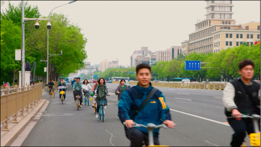 四月的北京,桃红柳绿,景色宜人。活动当天,同学们穿上统一的运动T恤,从文华胡同出发,沿着长安街和中轴线进行了骑行,沿途参观了部分红色遗迹,骑行中大家互相帮助,踩起车来都轻松自如,脸上都洋溢着喜悦和满足。