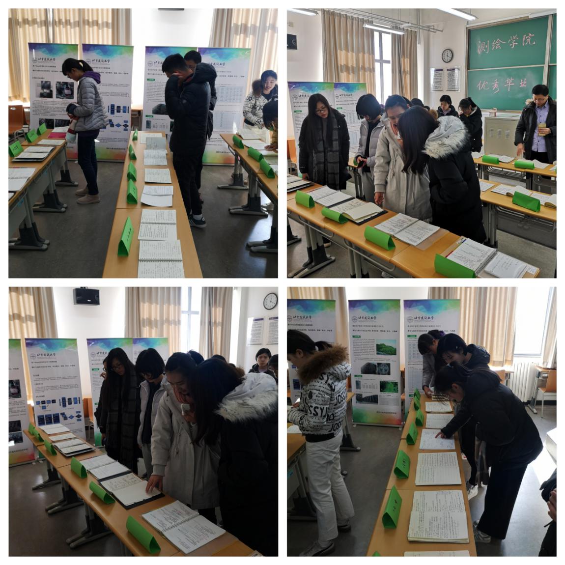 在百合漫画 展示期间,观展的同学们对优秀笔记赞不绝口,现场交流学习经验。测绘工程专业工程教育专业认证复评专家组的成员们也来到展示现场,认真观看课堂笔记并对详实的内容、工整的笔迹给予高度评价。展示活动最后,百合漫画 党委副书记冯永龙、辅导员施建民为获奖同学颁发证书。