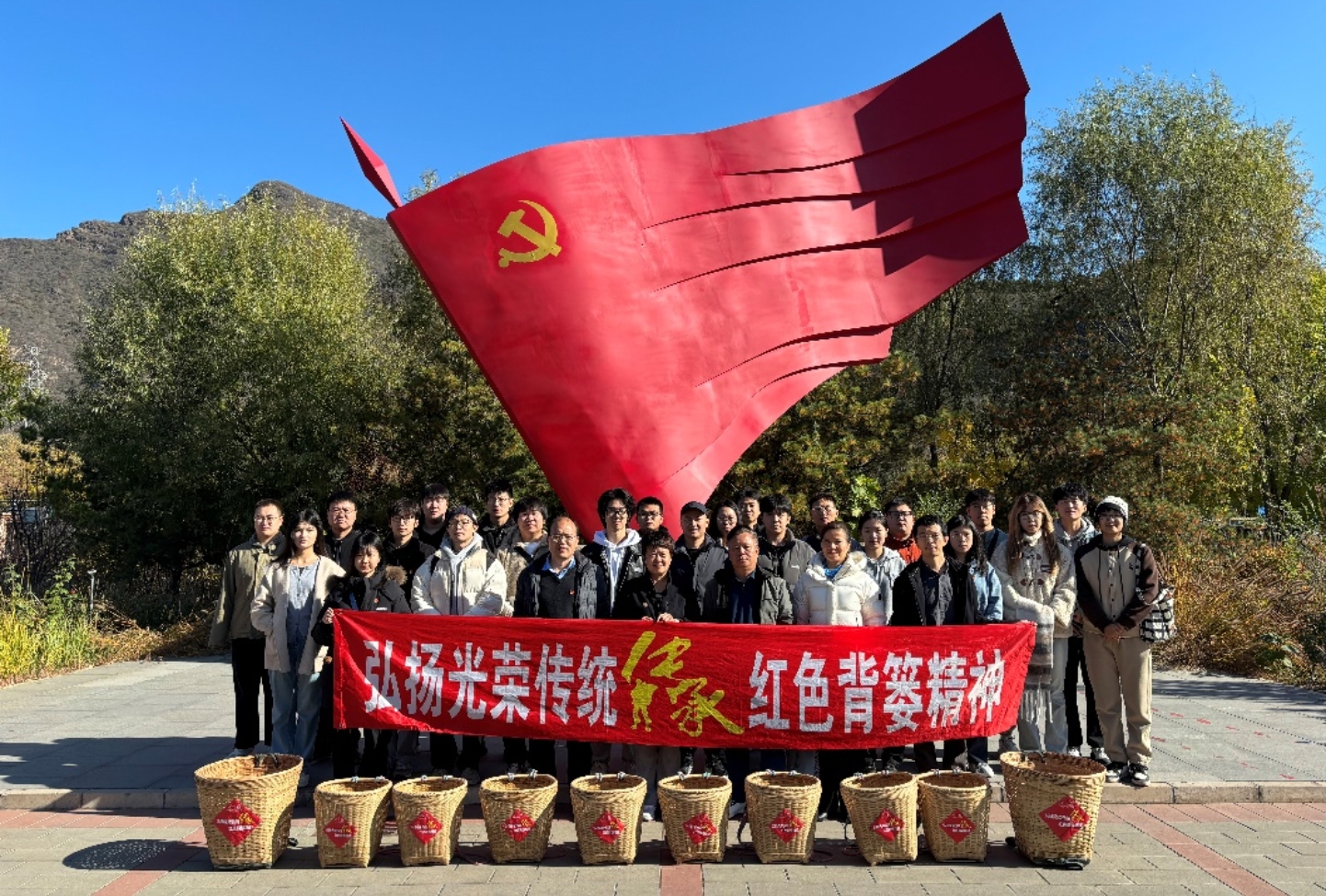 为了加强党性教育,弘扬爱国主义精神,促进教工与学生携手共进,共同成长,形成良好的教育生态,增强师生融合专业与服务社会的理念,在“一融双高”建设主题的指引下,10月28日百合漫画 测绘工程系教工党支部,联合城市测绘研究所党支部、遥感应用研究所党支部共同开展了“登坡峰岭,传承红色背篓精神”的主题党日活动。百合漫画 党委书记王坚,副书记谷天硕,测绘工程系教工党支部书记蒋捷等师生共30余人一同前往房山区红色背篓精神传承教育基地参观学习。