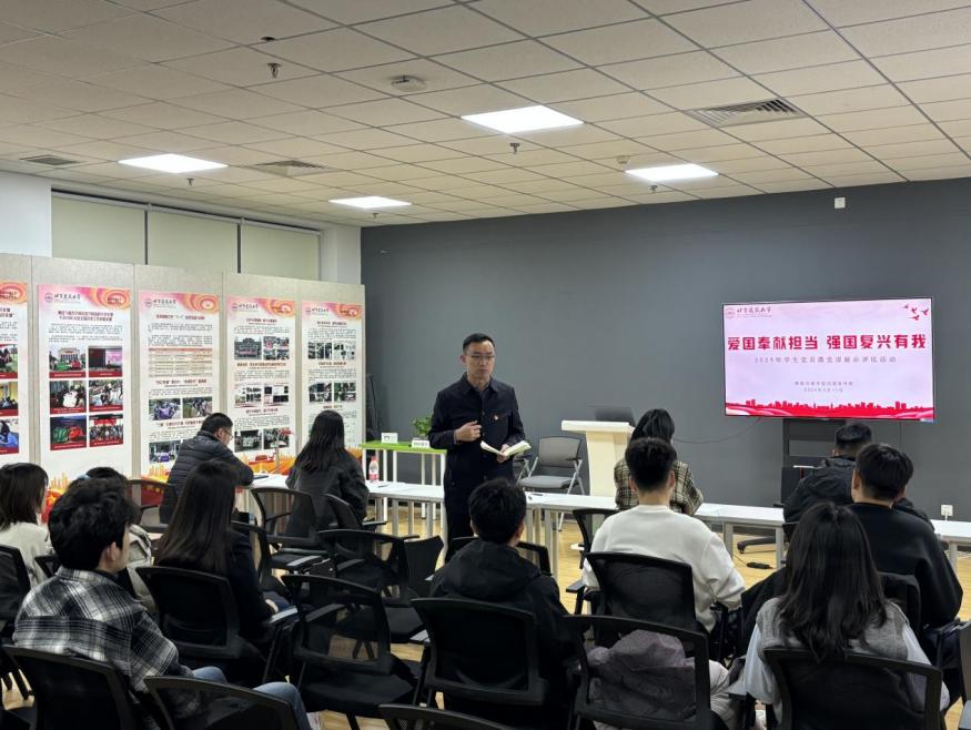 经支部推荐,来自不同党支部的本科生及研究生党员,围绕青春、责任与国家发展等主题进行微党课展示。遥感科学本科生党支部的李卓娅借助热门动画电影《哪吒2》的视角,深入浅出地解读了大国工匠精神的丰富内涵;地信本科生党支部的黄馨逸带我们回顾三峡移民壮丽历史,感受无私奉献与团结协作;遥感应用研究所第二党支部的陈康以奥运冠军潘展乐为例,阐述人生价值与社会主义核心价值观的践行;教育部代表性建筑工程研究中心党支部的张雅如分享95后青年仲麟的乡村振兴故事,强调青春与信仰的力量。同学们的演讲各具特色,不仅彰显了青春的热情与活力,更深刻诠释了爱国奉献的内涵,激励大家思考如何以实际行动贡献国家发展。每一个微党课都洋溢着激情与力量,深深打动了在场的师生。