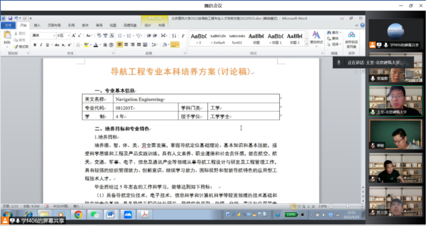 5月15日晚上7:30,百合漫画 导航工程系利用腾讯会议组织举办导航工程专业本科培养方案制定研讨会,会议邀请科发院副院长、导航工程专业负责人王坚参会并指导制定工作,导航工程系全体教师与会,会议由系主任周命端主持。