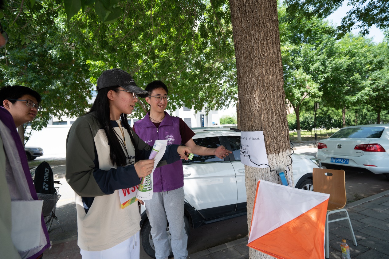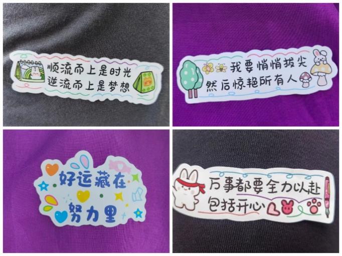 在完成心理知识问答后,志愿者为每位参赛同学递上印有励志向上标语的贴画,鼓励大家继续奋勇向前。