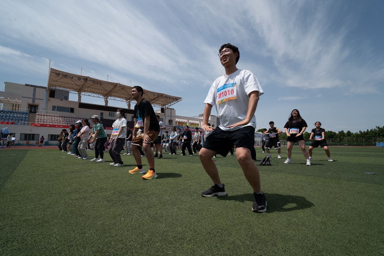 活动以“解忧八段锦”开始。在明媚的阳光中,随着音乐的缓缓响起,大家纷纷站立在宽敞的场地上,闭上双眼,深呼吸,感受着自己与周围环境的和谐共处。在主持人的引导下,大家开始逐渐进入热身阶段。