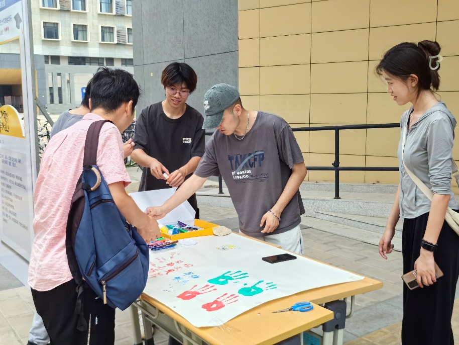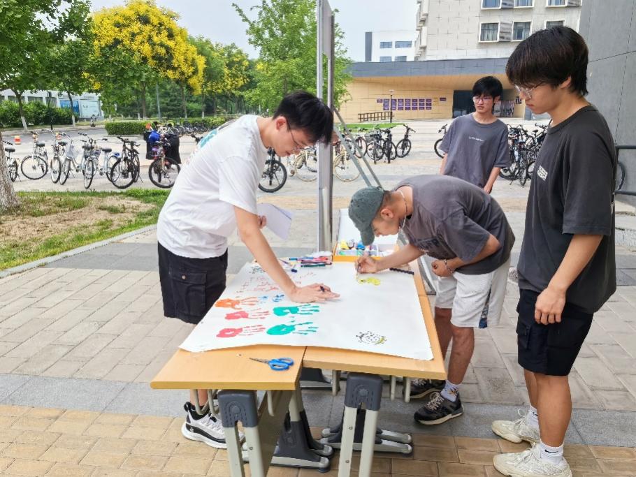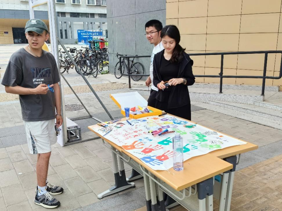 在绘画接力活动区,同学们发挥想象齐心协力绘画出一副独特的作品。从全站仪到我院院徽,从一个个蓬勃多彩的掌印到一句句真挚的祝福,其中都包含着大家对未来的美好期许与憧憬,以及对百合漫画 的不舍与眷恋。