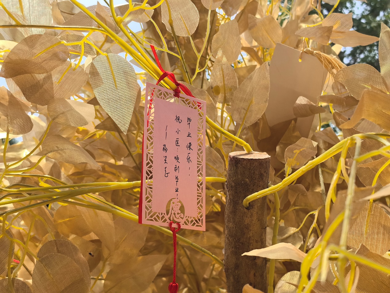 活动当日,毕业生们纷纷前来书写下自己对未来的美好向往与追求,我院的老师们和其他同学们也送上了自己的祝福,并亲手将书签挂在了许愿树上,保留下了专属于北建测绘学子的美好回忆。