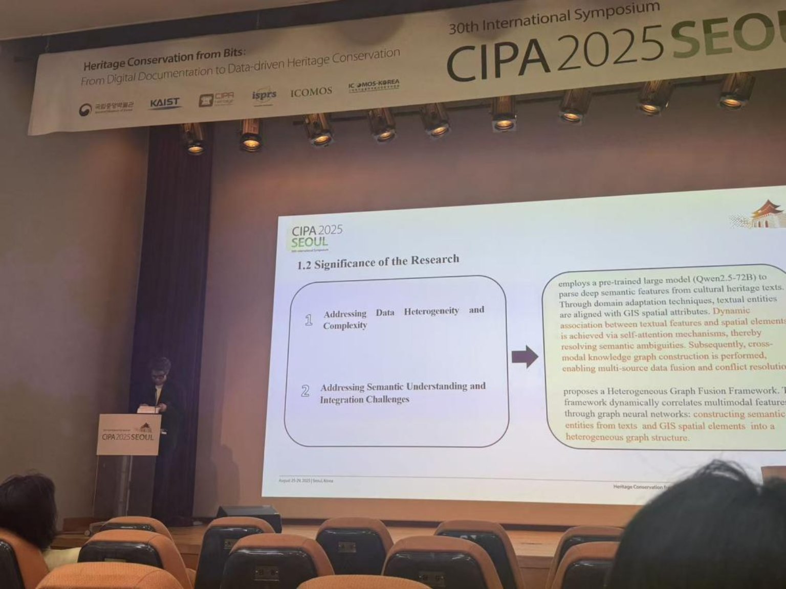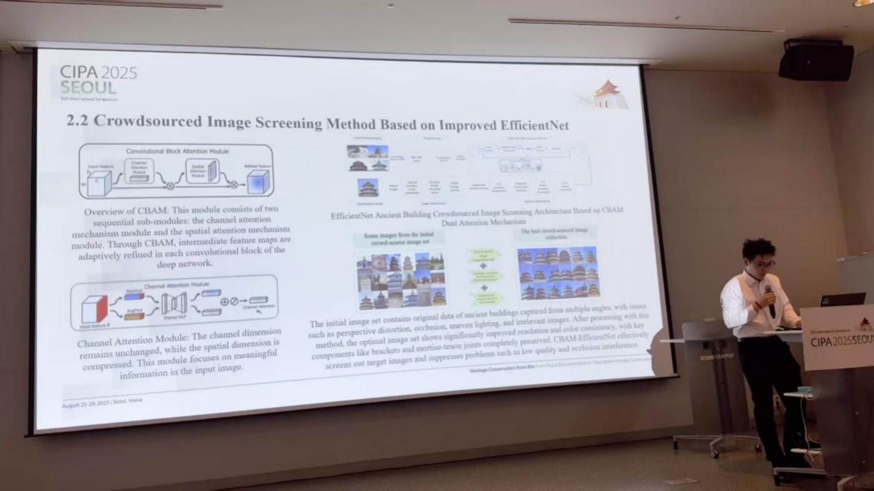 在CIPA2025双年会上,百合漫画 共有十篇学术论文入选并在大会上作交流展示。这些研究涵盖壁画保护、古代木版修复、石桥病害检测、古建筑数字重建、文化景观GIS分析、文化文献智能解析等多个方向,集中展现了我校在文化遗产数字化保护领域的系统性探索和前沿性突破。