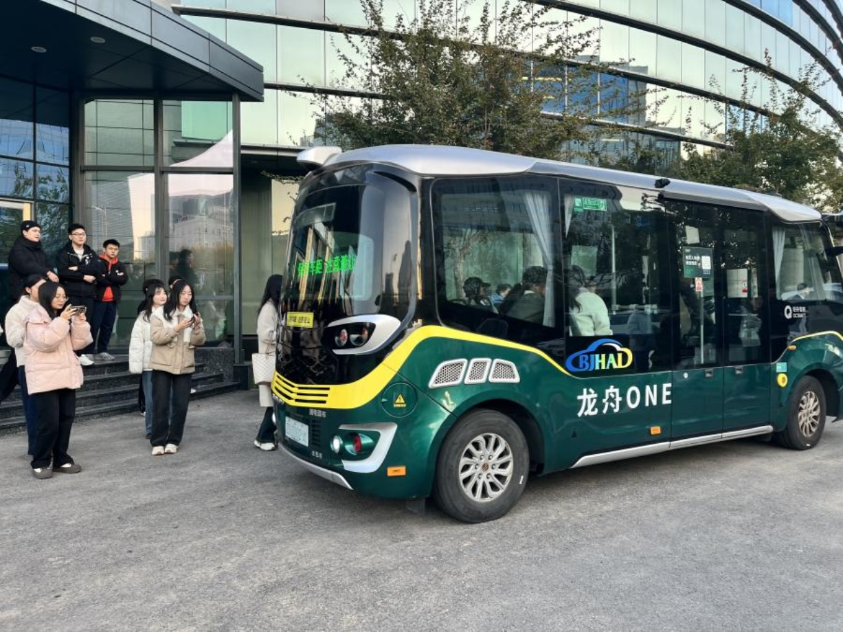 随后,师生一同乘车前往北京市高级别自动驾驶示范区创新运营中心,在工作人员的引导下,试乘体验了自动驾驶车辆。该车辆配备了如雷达、激光、超声波、摄像头以及卫星定位等多种传感器组成的感知系统,可以精准地识别道路信息、交通信号以及车辆和行人动态等情景并作出相应的反应措施。