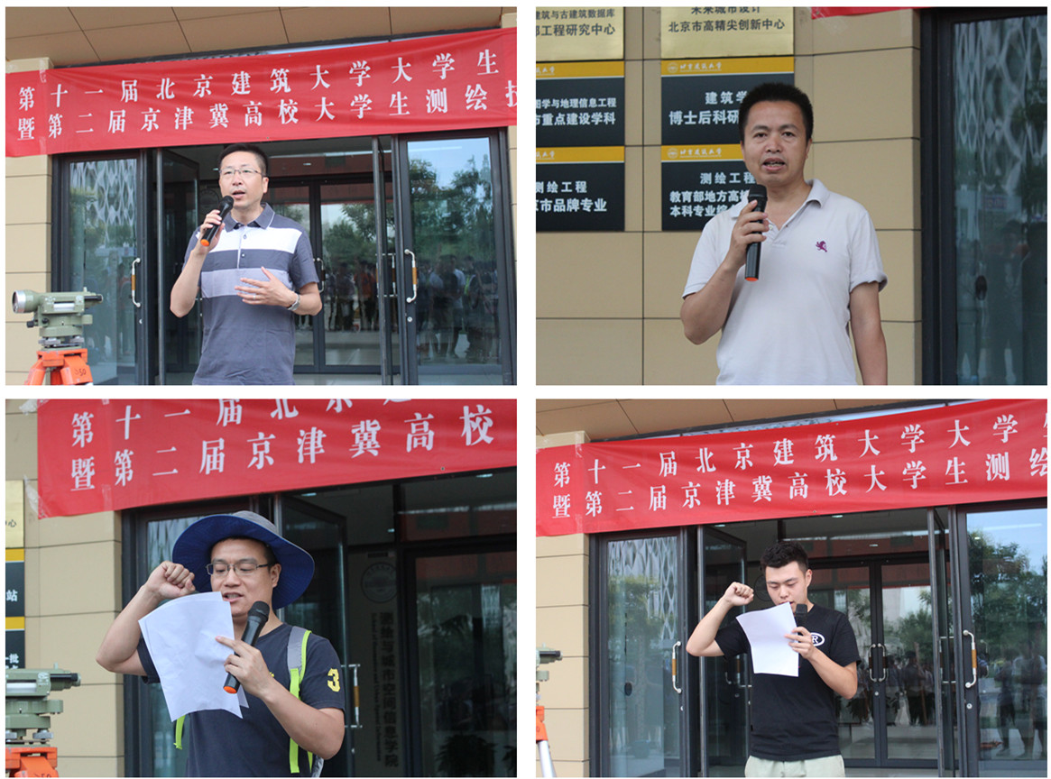 开幕式上,冯永龙向同学们强调了实践创新能力培养的重要性,并勉励全体学生要以此次比赛为契机,在实践中磨砺自我,赛出好成绩,力争取得京津冀高校大学生测绘技能大赛参赛资格;裁判长罗德安教授详细说明了本次大赛的比赛细则及注意事项;裁判员代表周命端、参赛学生代表赵鑫垚分别进行宣誓。