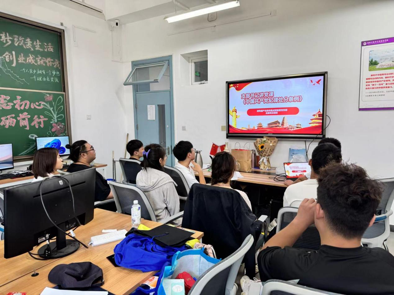 为进一步深入学习贯彻习近平总书记关于党纪学习教育的重要讲话和重要指示批示精神,教育引导党员同志进一步增强纪律意识、提高党性修养。6月26日,建筑遗产北京市重点实验室党支部在学F120以支部书记讲党课形式开展组织生活会,进行政治理论学习,学习《中国共产党纪律处分条例》。党课由支部书记常新峰主讲。