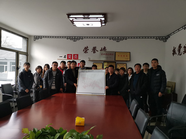 在上次赴村实践中,本科生党支部在专业教师的带领下连续奋战数日,完成了村域图的精准测绘和编制,本次支部专程把完成的村域图带到村里,村党支部书记相远军代表村里接收村域图。他表示衷心感谢,村里下一步要大力发展旅游,将在村域图的基础上全面开始蓝图设计和规划。