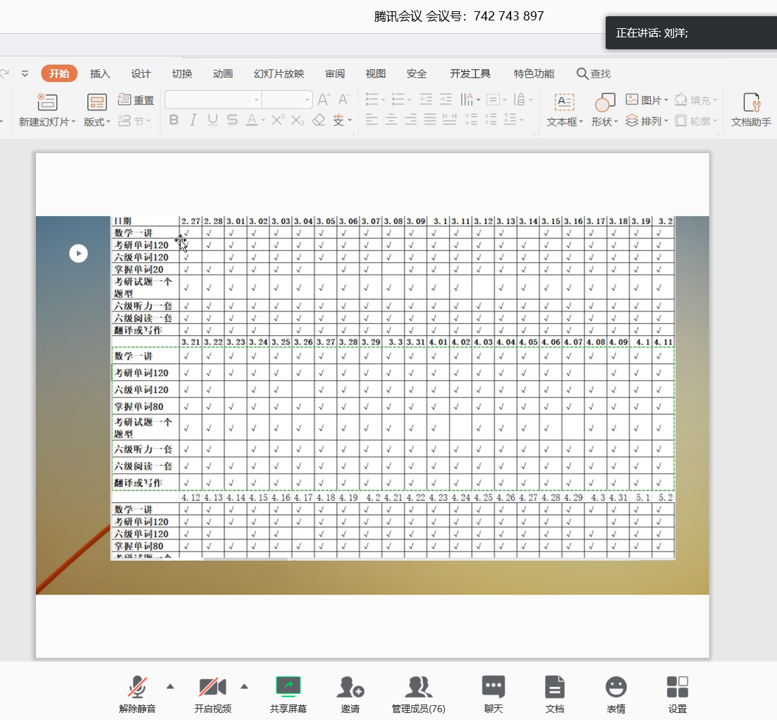 遥161班刘洋考研复习规划表