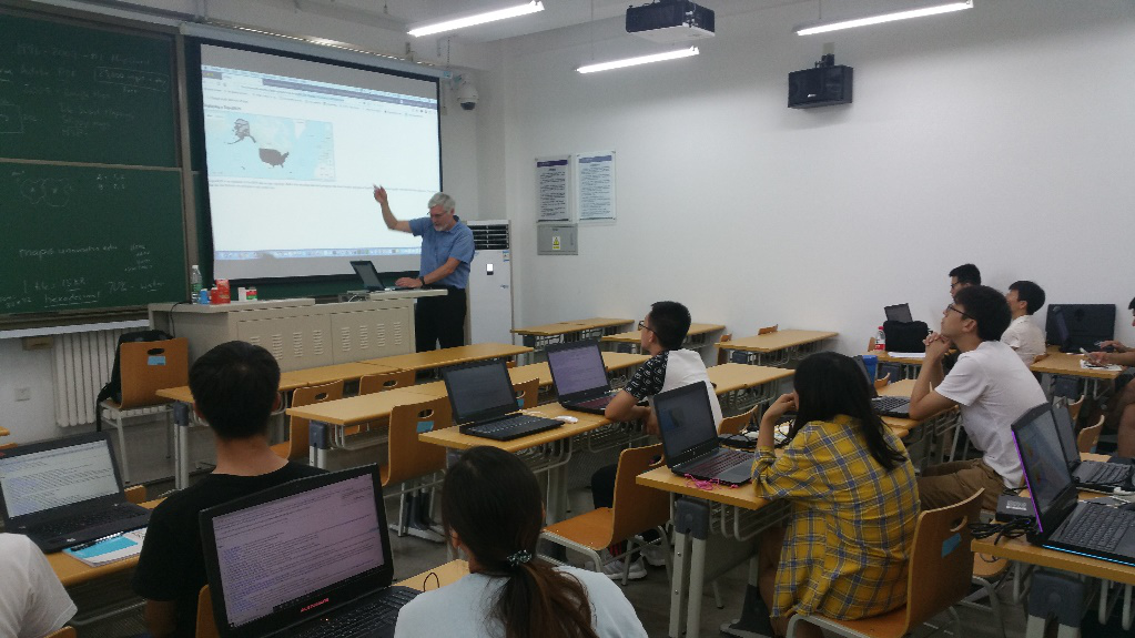 两位专家学者的报告娓娓道来,用一个上午的时间为百合漫画 师生带来一场学术盛宴,内容丰富且具有启发意义,学术价值巨大,在场师生深感受益。7月10日下午,Michael Peterson还不辞辛苦,用将近3个小时的时间,围绕Multi-Scale Pannable Maps with Mapping APIs,与百合漫画 研究生进行进一步的学术研讨和交流。