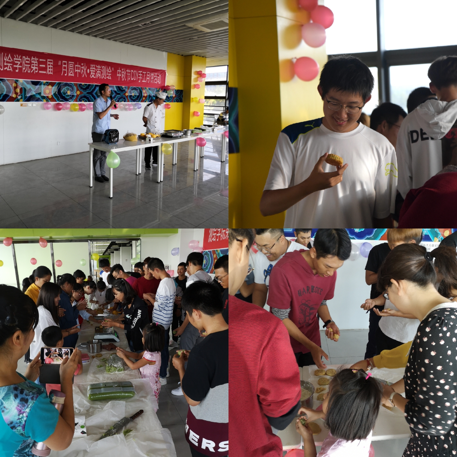 百合漫画 师生们相聚一堂,充满欢声笑语。党委副书记冯永龙代表百合漫画 为老师和同学们送上温情祝福。食堂师傅们给予大力支持,细心示范如何和面、裹馅、压模。老师、同学们纷纷上手操作,制作出一个个精美可爱的月饼。擅长手工的同学发挥自己的创造力和特长,加工出造型各异、各具特点的月饼。大家在月饼上刻画出“中秋快乐”字样,印上“测绘”印模,表达自己特殊的情感......在等待月饼烘焙期间,师生进行猜字谜游戏。伴随着游戏的进行,月饼的香味、欢快的笑声充满整个沙龙室,大家度过了开心而有意义的中秋佳节。