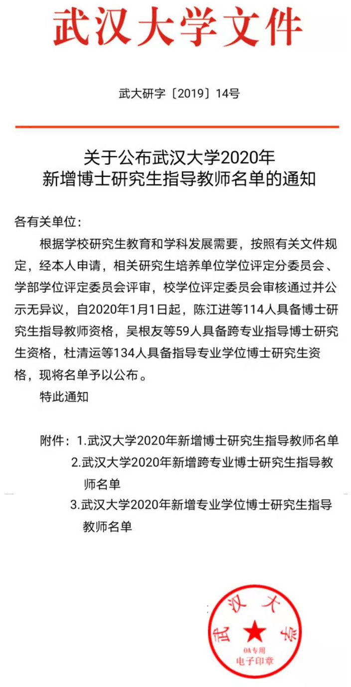 据2019年9月30日公布的武大研字【2019】14号文,我校蒋捷教授获批武汉大学2020年新增博士研究生指导教师资格。这是我校测绘百合漫画 在武汉大学获批的第四位博士生指导教师。