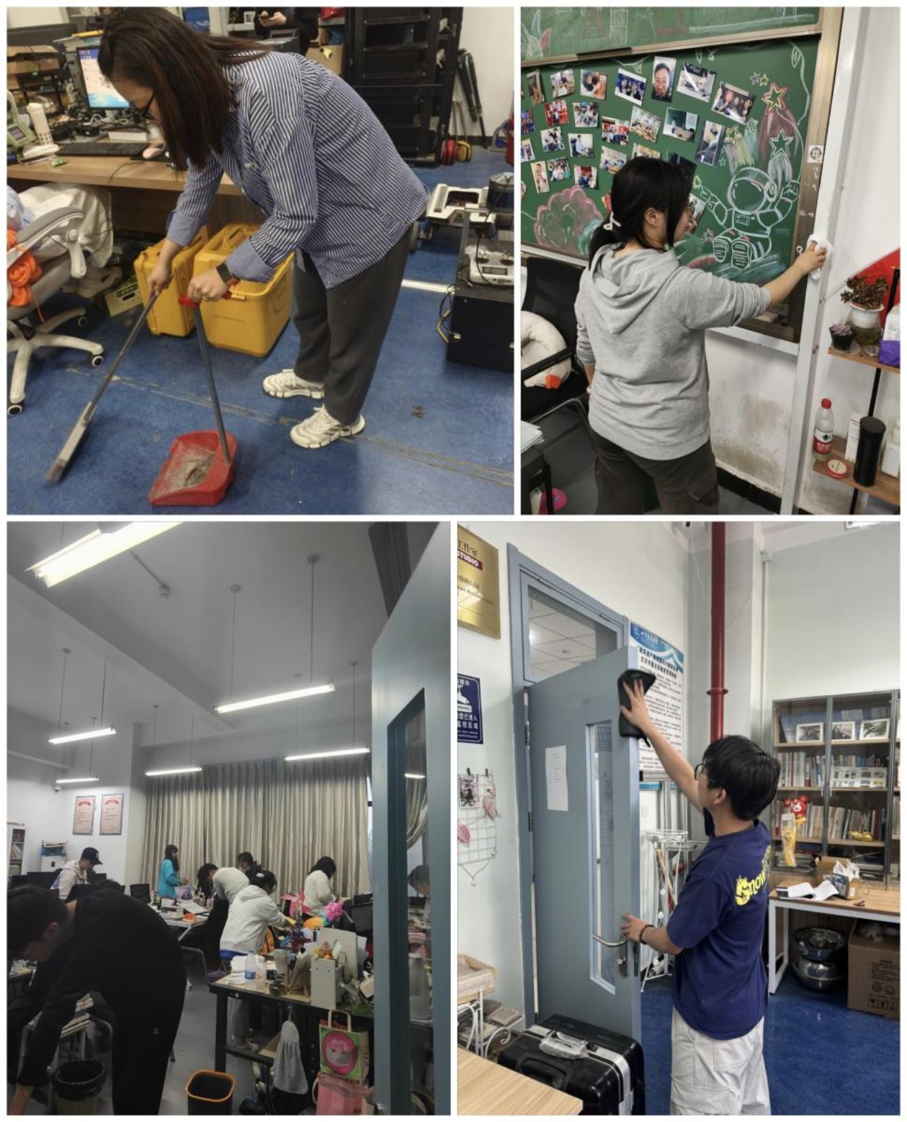 研修室焕新行动不仅关乎环境的整洁,更关乎学习氛围的营造、健康生活的保障以及学生责任感的培养。一个干净整洁的研修室能够为学生提供一个舒适的学习环境,有助于提高学习效率。通过定期清扫,可以有效地减少有害物质的滋生。参与清扫过程的同学们互相配合,不仅能够锻炼团队协作能力,还能够培养责任感和奉献精神。学生们在参与清扫的过程中,体会到劳动的价值和乐趣,学会珍惜和爱护自己的学习环境。
