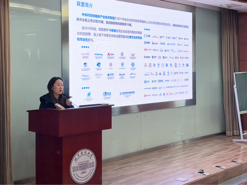 接着,孙燕萍进行宣讲,介绍联盟中的企业对测绘、遥感等专业学生的招聘需求,深入剖析了当前的就业形势与政策背景、介绍了近年来企业招聘、毕业生就业等情况,使毕业生对就业市场有了更为清晰的认识。在给大家的建议上,她鼓励学生应当尽早明确个人的职业愿景与目标,调整心理预期,避免盲目性与随意性的求职行为,本着“先就业,再择业”的心态,珍惜应届生身份,转变就业观念,拓宽就业范围,找准自身定位,明确就业目标。