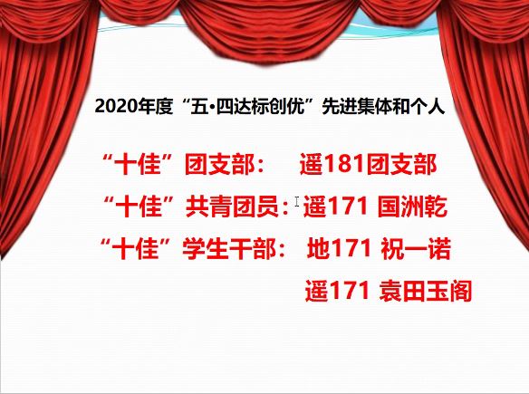 随后,李晨及黄凯分别宣读了《2020年度“五·四达标创优”先进集体和个人表彰决定》以及《2020年测绘之星获奖名单》并对获奖同学表示祝贺。
