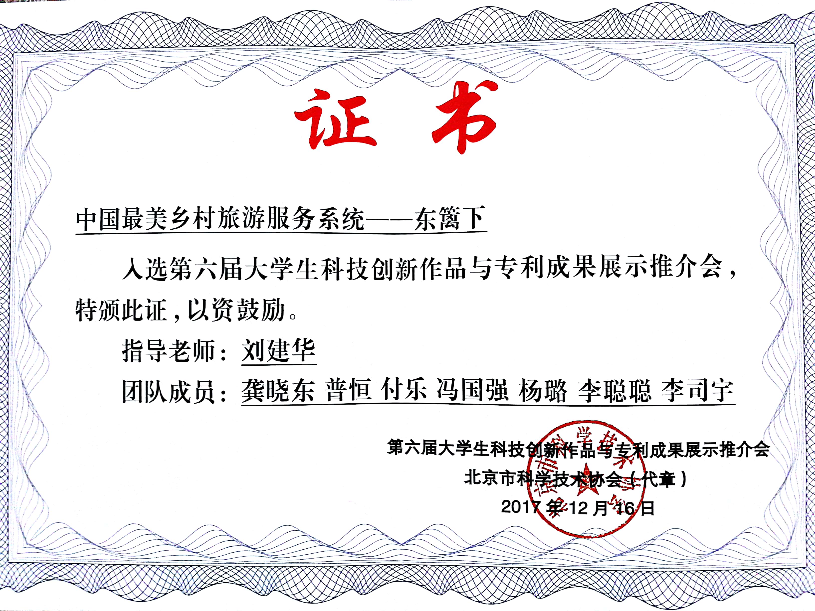 第六届大学生科技创新作品与专利成果展示推介会近日在中国农业大学举办,展期2天,百合漫画 学生龚晓东、普恒、付乐、冯国强、杨璐、李聪聪、李司宇的公益作品《中国最美乡村旅游服务系统-东篱下》(指导老师:刘建华);杜程、张蕾、路畅、余彤撰著的学术作品《基于BDS的公交车载精准雾霾监测系统研究》(指导老师:丁克良、周命端)以及刘亚杰、鲍东东、罗麒杰、王彤、刘明亮、于龙昊、王来阳撰著的学术作品《高精度智能化测量数据采集与分析系统BJMOS》(指导老师:丁克良)成功入选。