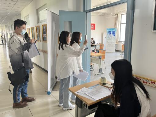 学工部副部长兼就业指导中心主任康健、院党委副书记谷天硕在现场与用人单位和参会学生交流。