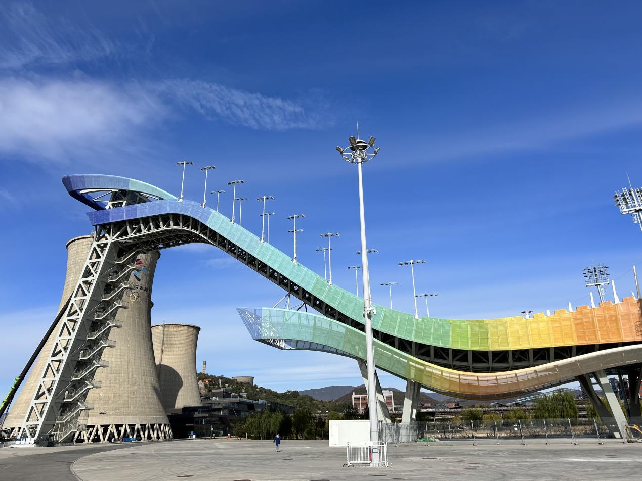 参观的首站为首钢滑雪大跳台公共区域。这里曾是北京2022年冬奥会自由式滑雪和单板滑雪比赛的场地。该跳台于2019年10月31日建成,是世界首例永久性保留和使用的滑雪大跳台场馆。北京冬奥会赛后,可承办国内外大跳台项目体育比赛,成为专业运动员和运动队训练场地、青少年后备人才选拔基地、赛事管理人员训练基地等。