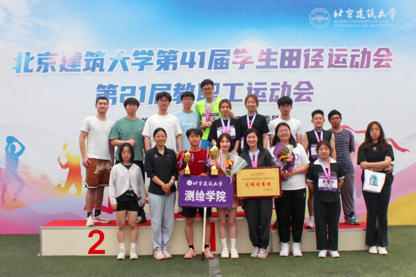 青春与阳光共舞,测绘学子热情与拼搏的精神,为校园增添了一道靓丽的风景线。经过一整天的激烈角逐,运动会圆满落幕,同学们也取得了优异的成绩!
